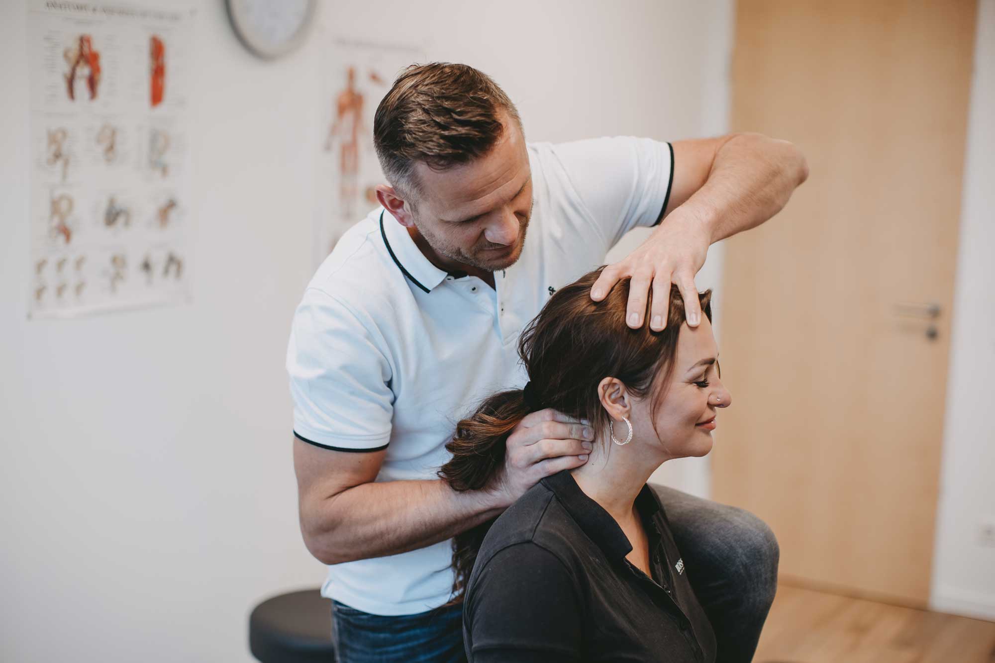 Zur Behandlung gehören Methoden aus der Manuellen Therapie, die sich insbesondere auf den Kopf- und Nackenbereich konzentrieren. Außerdem lernen Sie Übungen kennen, die Sie problemlos zu Hause oder am Arbeitsplatz durchführen können. Regelmäßig angewendet, entspannt sich Ihre Kaumuskulatur nach und nach und das Kiefergelenk arbeitet wieder stressfrei.
